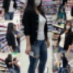 推定Eカップのスリムな奥様。セクシーな奥様を店内で発見!よく見ると肩からは薄い紫のブラ紐が!!柔らかそうなオッパイは美味しそうで、終始ブ...