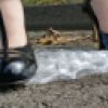 トングで一匹ずつ拾っては、それぞれ自由に踏ませた