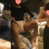 同じくピンクメタリックのパンティが丸見え